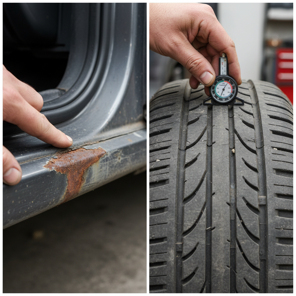 - Roest en schade: Controleer alle carrosseriedelen, vooral onder dorpels, wielkasten en de onderkant van deuren.